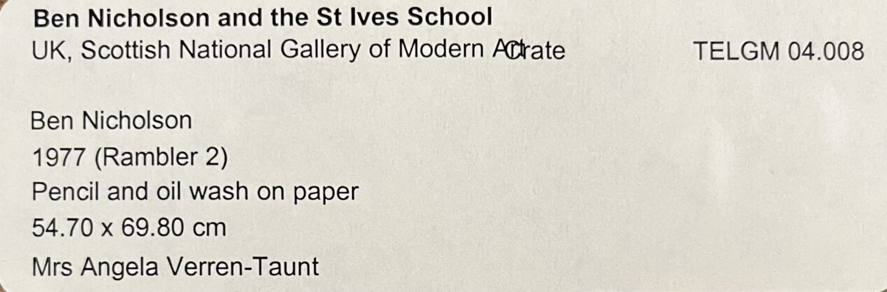 Scottish National Gallery of Modern Art - "Ben Nicholson and the St Ives School", leant by Angela Verren Taunt