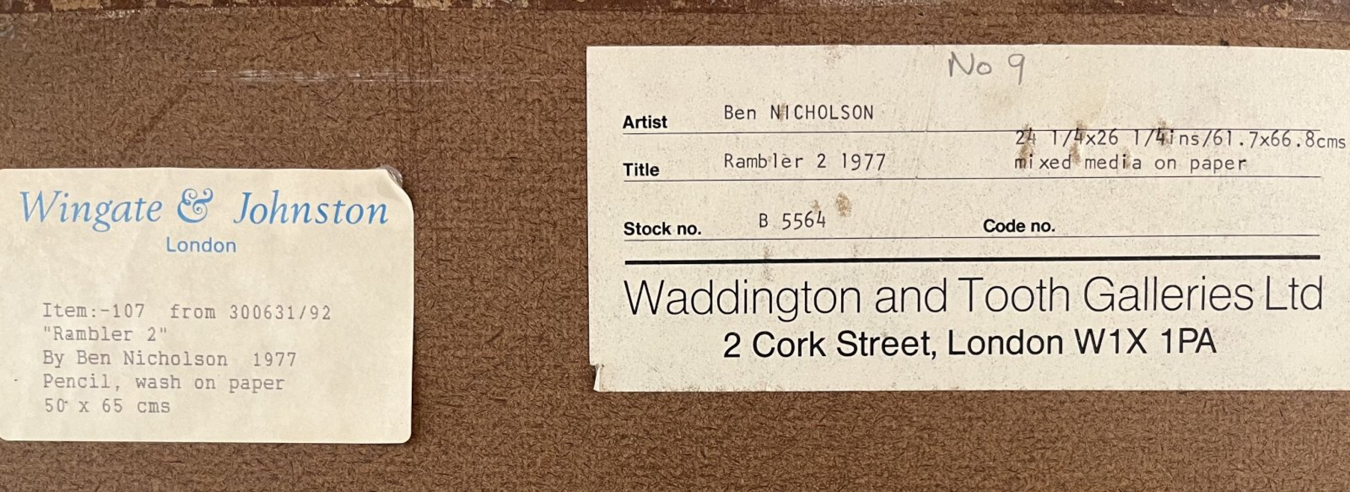 Further signed Nicholson, titled and dated 1977, and inscribed "lent to Angela + to go to her when I pop" on back-board verso
