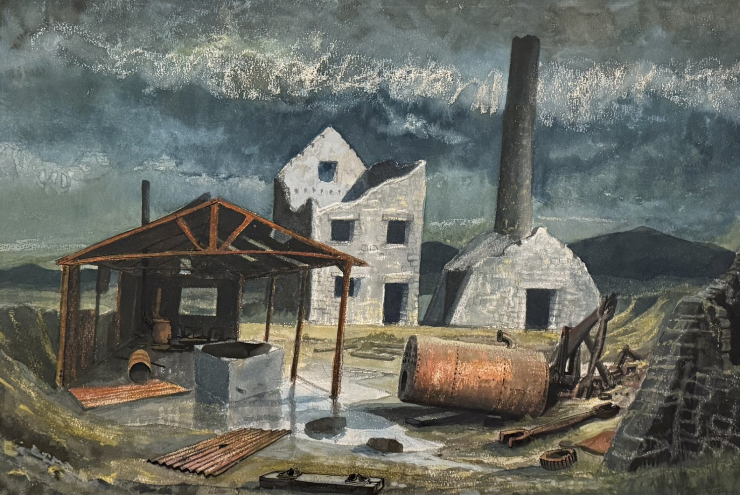 One of a series of early works by Charles Oakley which features a derelict industrial scene. The location is not known