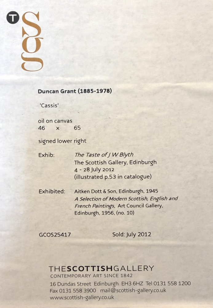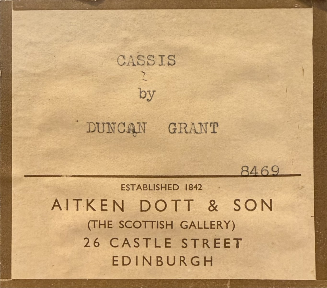 A wonderful vibrant scene, painted from the garden of one of the houses Duncan Grant and other members of the Bloomsbury Group stayed in. Cassis was a vital creative retreat for the Bloomsbury Group during the 1920s and 30s. Artists Vanessa Bell and Duncan Grant, along with others including Roger Fry, frequented the area, renting houses like “La Bergère” to paint, socialize, and escape British winters