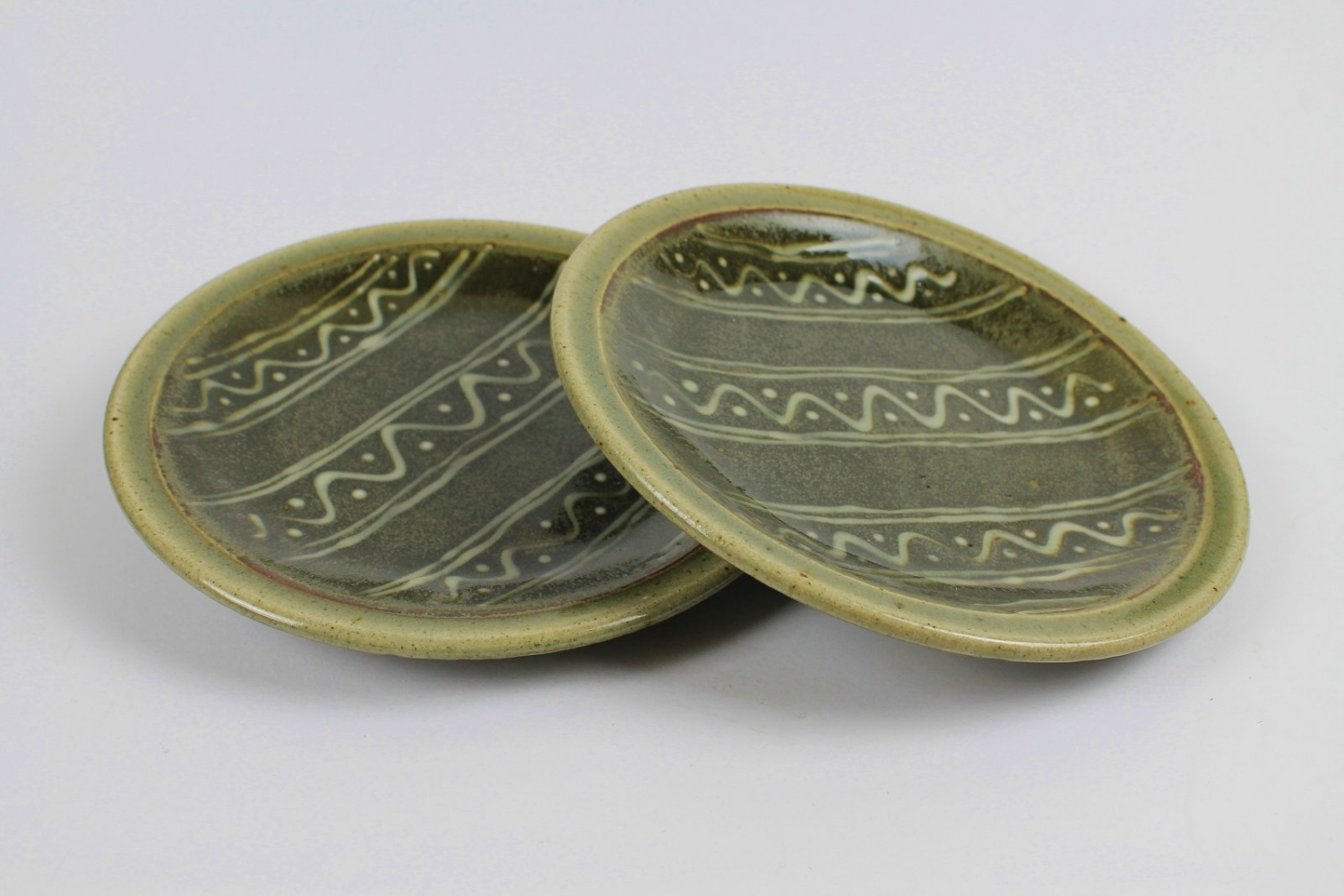 Pair of wave and dot pattern plates - green by Edward Hughes
