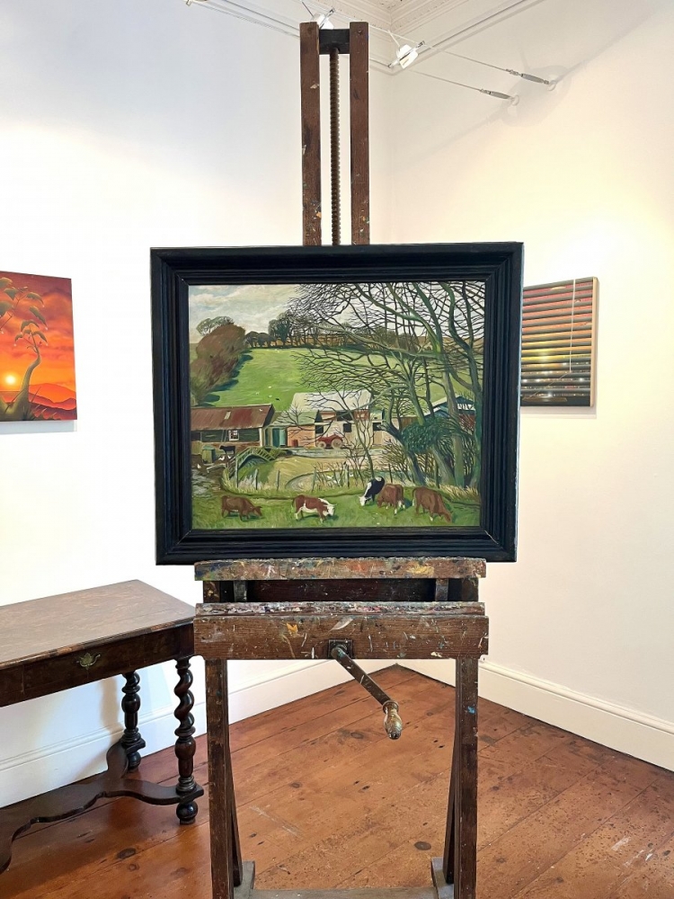 Farm with cows and tractor circa 1930 by Frederick Austin