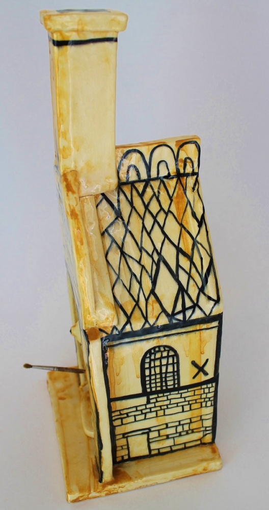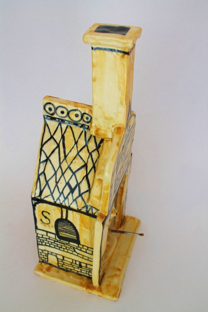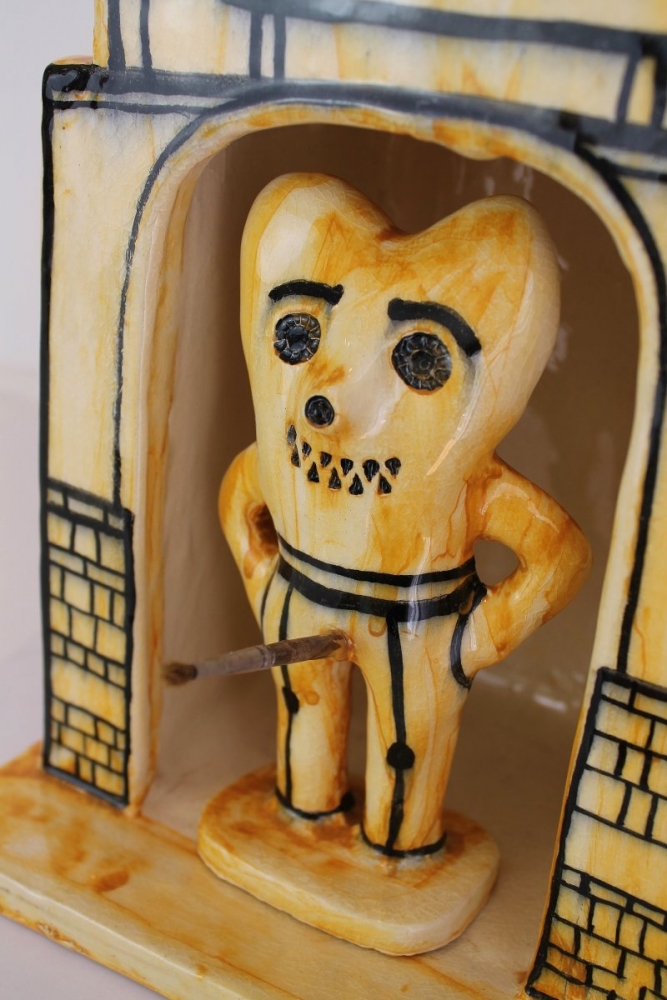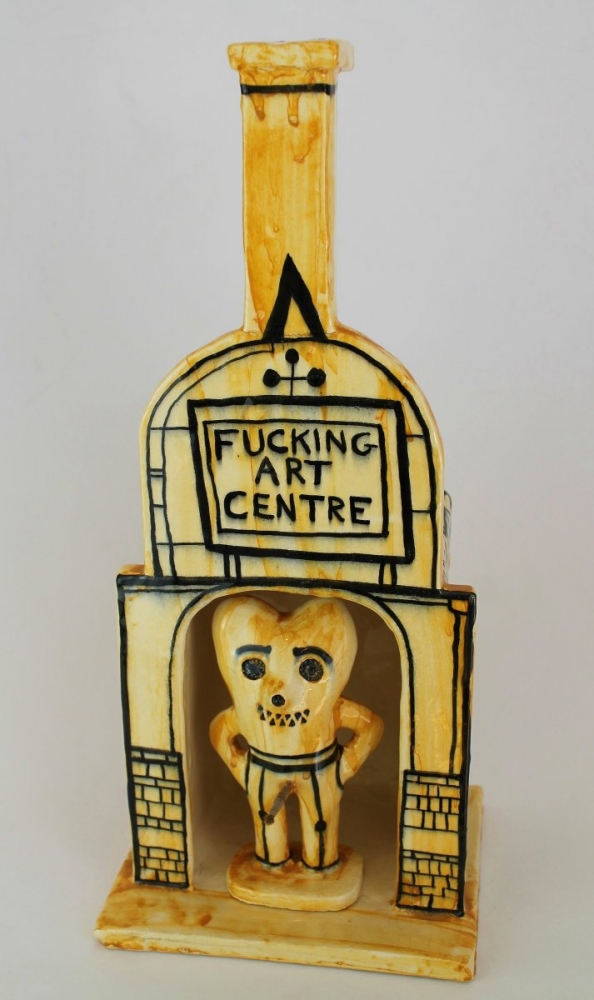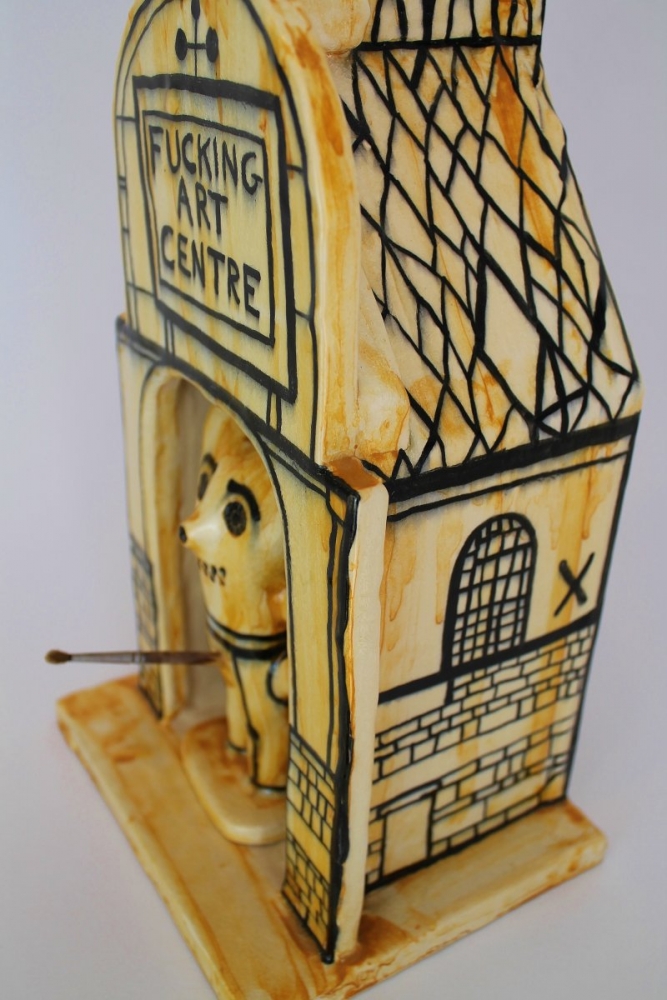 An amazing ceramic sculpture by Grayson, originally produced in 2016 in support of the Battersea Arts Centre. It depicts Alan Measles within the centre which stands a commanding 45 cm high.