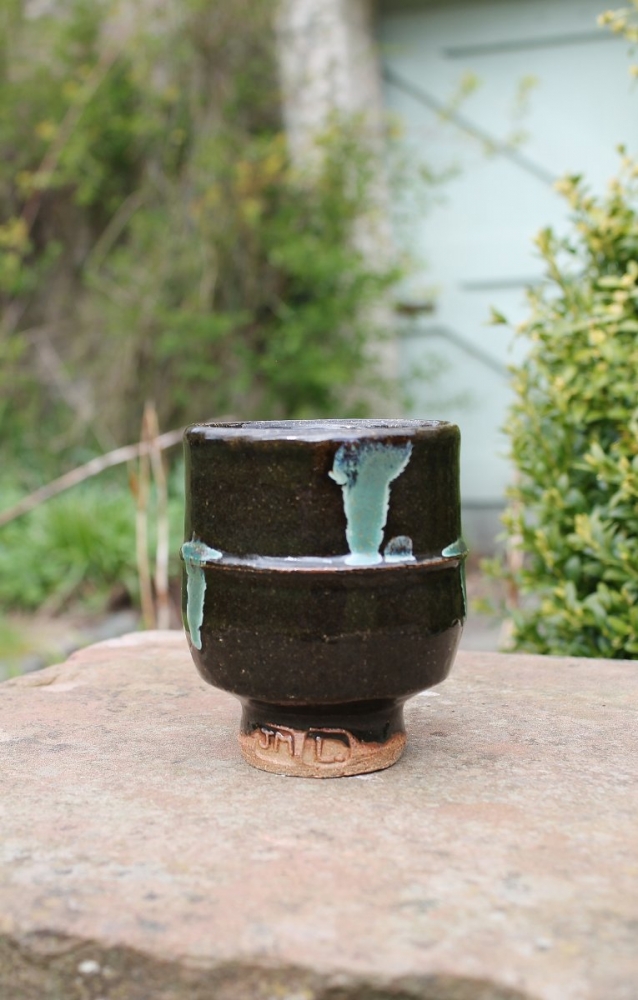 Yunomi with ridge, tenmoku with copper glazed pours by Jim Malone