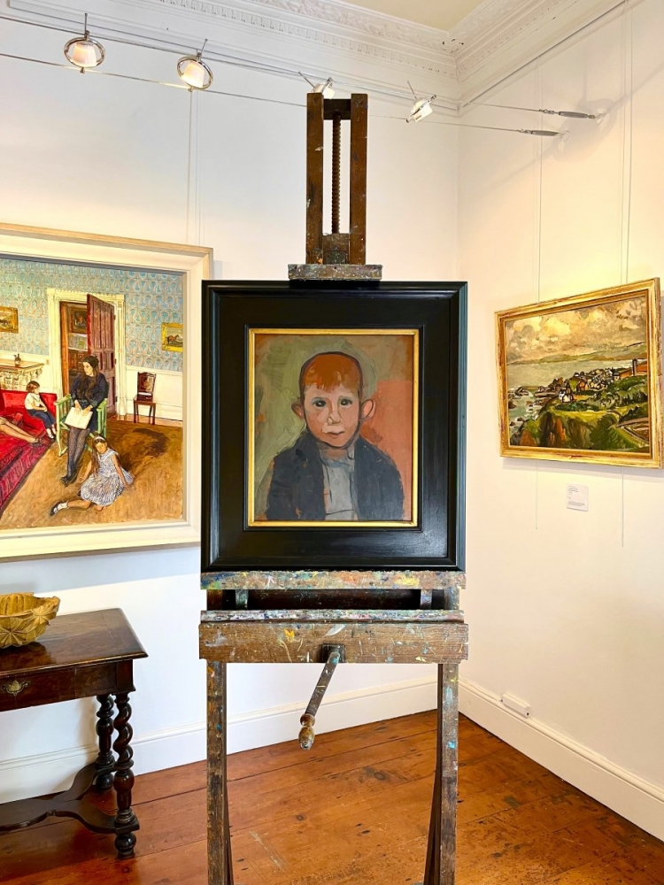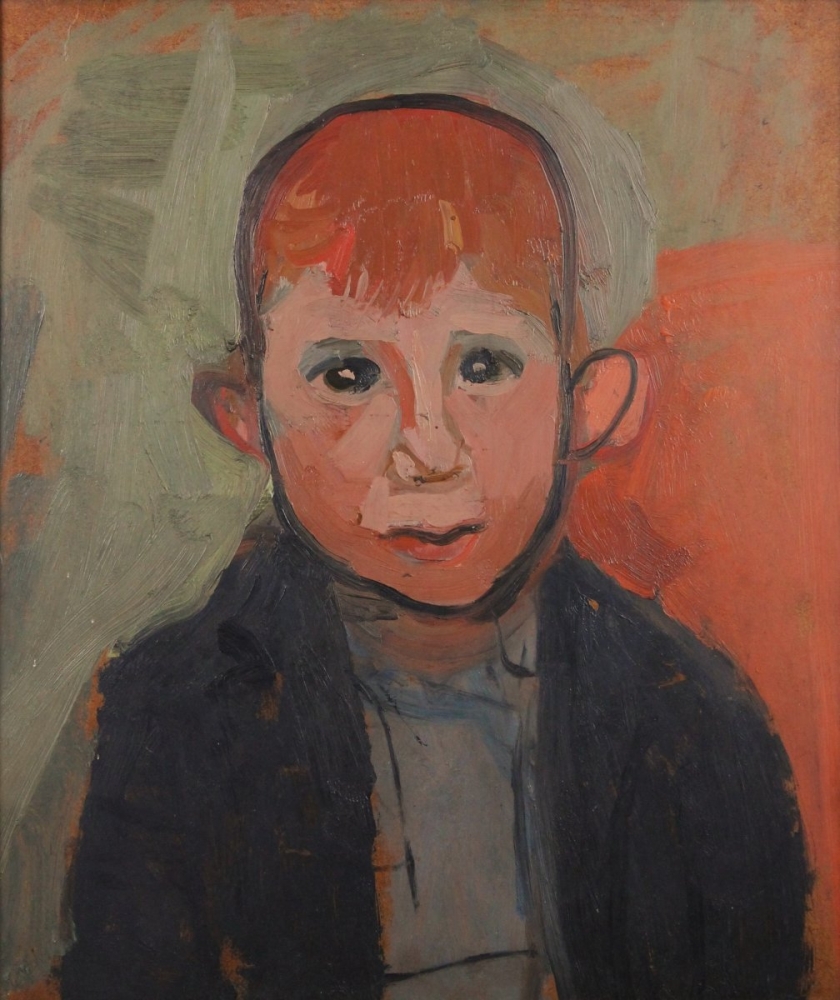 A wonderful face-on oil portrait, one of a small number of similar portraits, most however showing the young sitter in profile