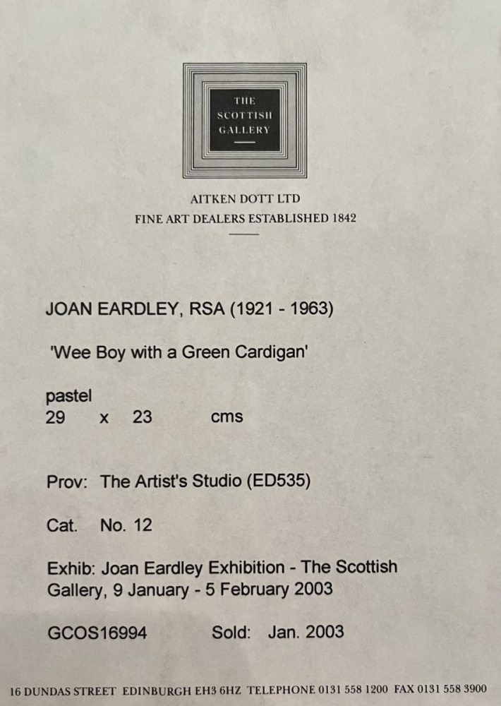 Signed, Joan Eardley, verso