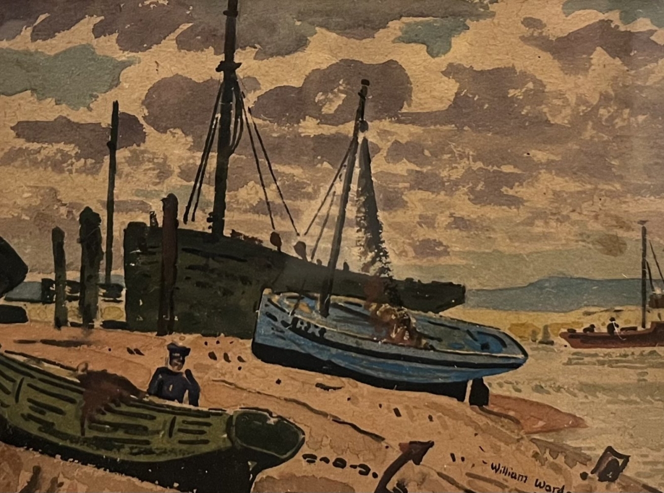 Boats on the shore by William Warden c 1940 by Mid-Century Modern Alternatives