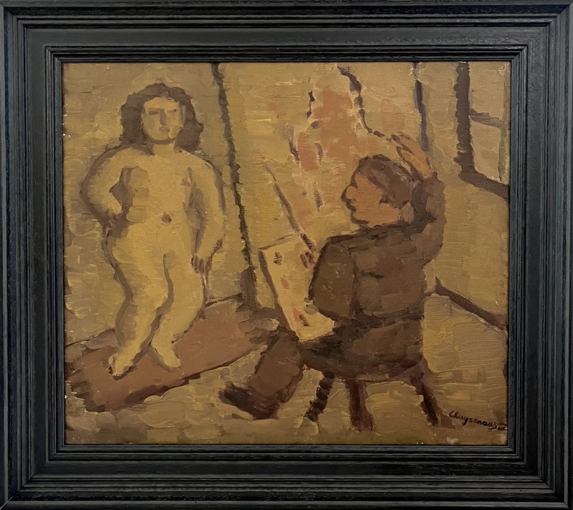 John Cluysenaar (1899-1986) initially following in the artistic footsteps of both his father and grandfather, Cluysenaar initially studied and practiced sculpture, establishing a studio in Uccle, Belgium. Success followed and in 1924 he secured a shared First Prix de Rome and the Godecharle Prize. Cluysenaar travelled extensively in Europe, including to France and Italy on study trips, but settled in the UK during the Second World War, ultimately relocating to Kirkcudbright in Scotland; it was here that Cluysenaar turned to painting, abandoning his sculptural practice. With a focus on both contour and rhythm, his work included both abstract post-expressionist pieces as well as figurative oils and life sketches in ink and graphite. Cluysenaar showed at the Glasgow Institute of Fine Arts, International Society of Sculptors, Painters & Gravers, the Walker Art Gallery, Liverpool and at the Royal Academy, London. After the war, he returned to Belgium and lived the rest of his life there. He died in 1986 in Noville-sur-Mehaigne, a small town about 35 miles south-east of Brussels.