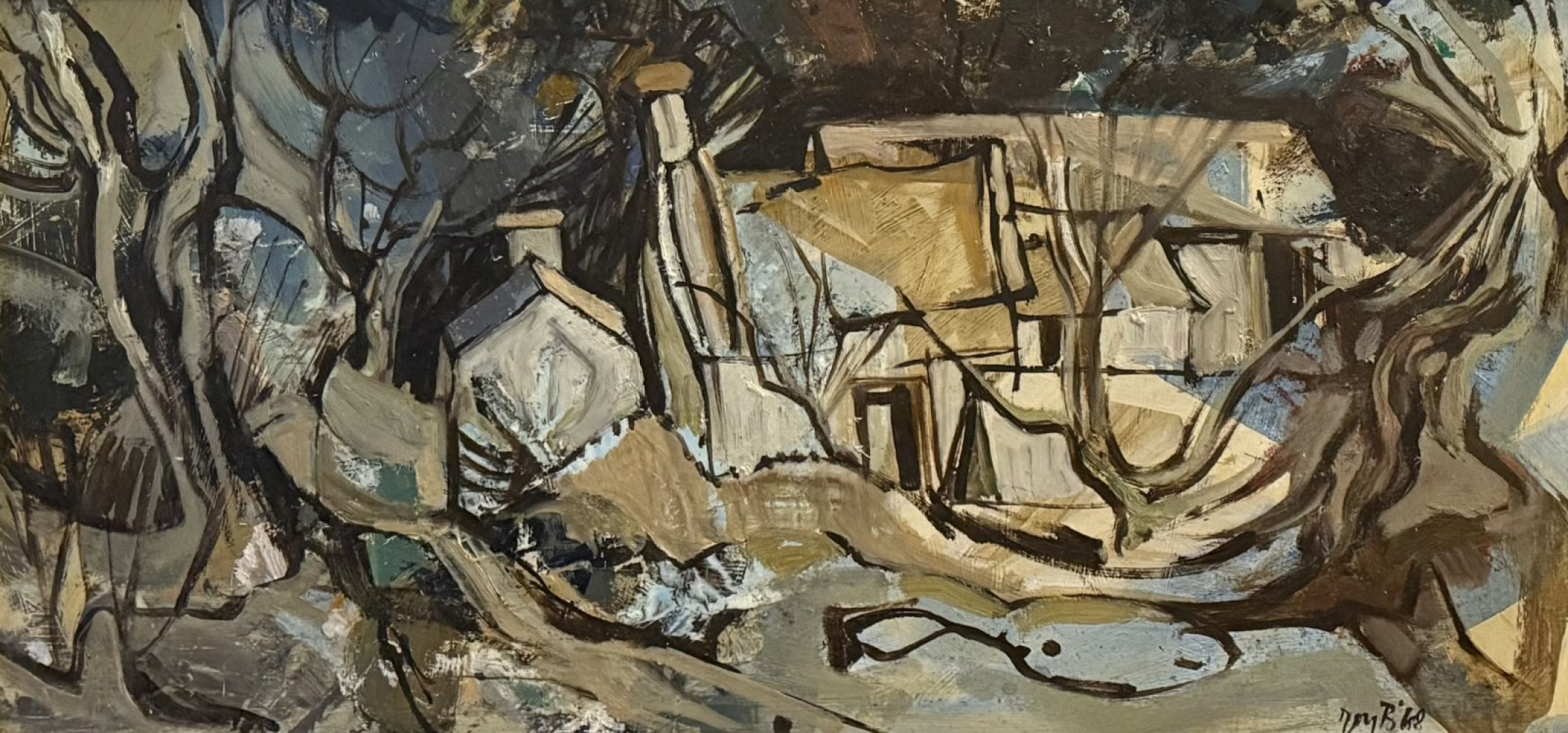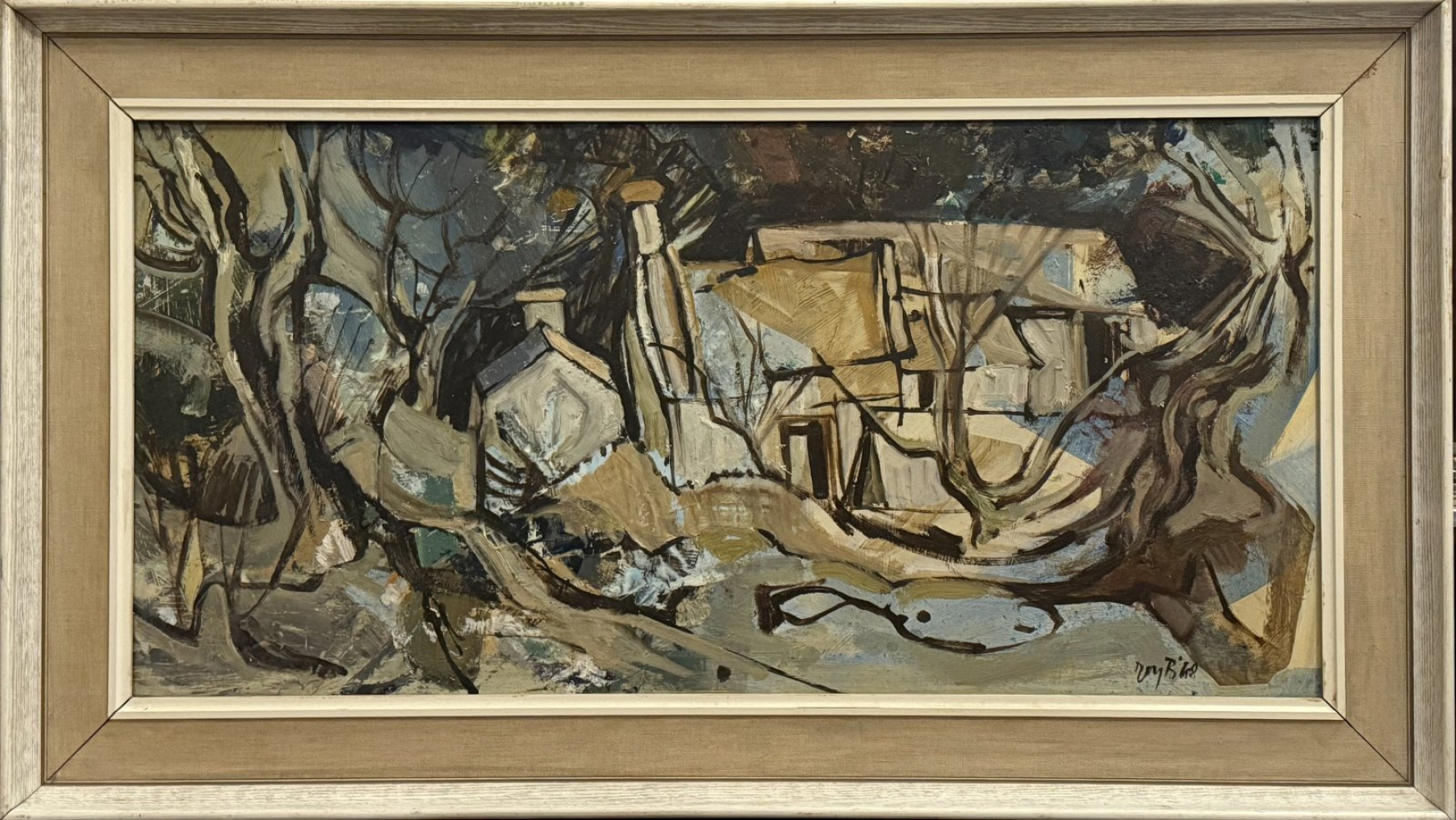 Roy Burrows, 1922 - 2010 - Painter of landscapes and teacher, born in Crewe, Cheshire. He attended Nottingham University and studied art at St Peter’s College, Peterborough, 1947–8, and at Nottingham College of Arts and Crafts, 1948–50. He taught at Cartref Melys School, in Conway, also teaching art summer schools at Coleg Harlech. Showed with RCamA and elsewhere in Wales and the provinces and one-man shows included Peterloo Gallery, Manchester. Stoke-on-Trent City Museum and Art Gallery holds his work. Lived in Colwyn Bay, Clwyd.