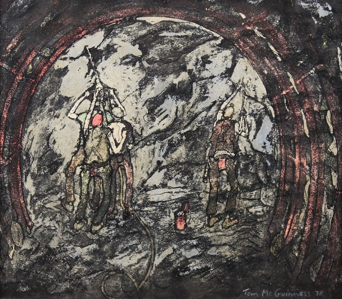 You'll see the stratification lines in the coal face also running through the miners; one inexorably linked with the other