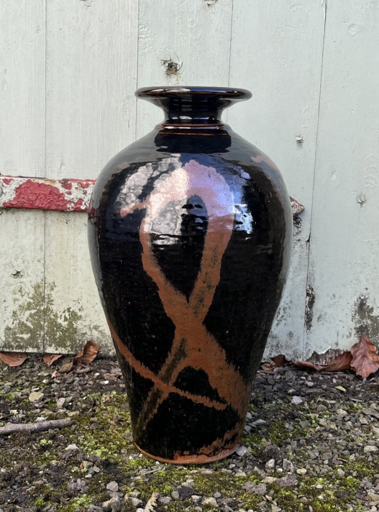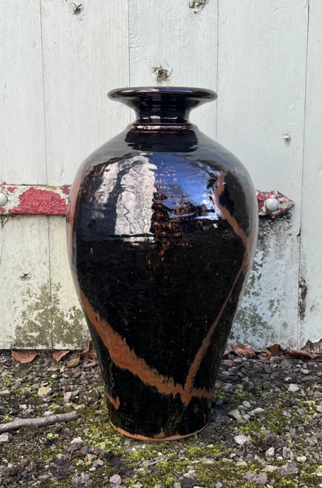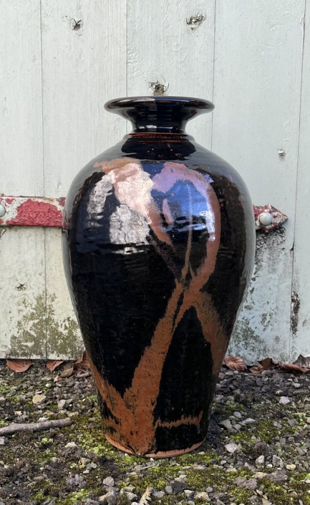 Thrown Vase Tenmoku with khaki by William Plumptre