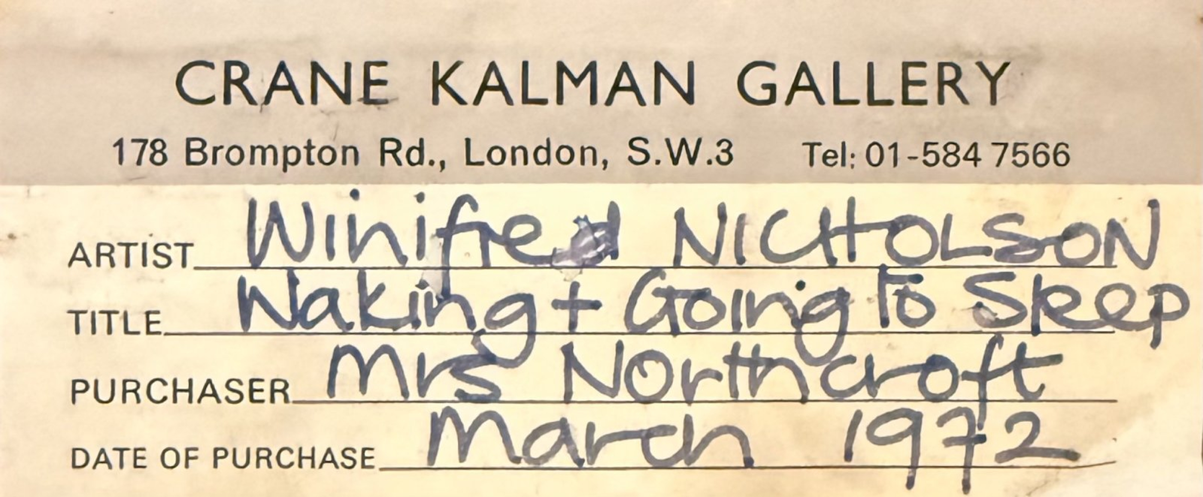 Previously with Crane Kalman Gallery, London, March 1972, where acquired by