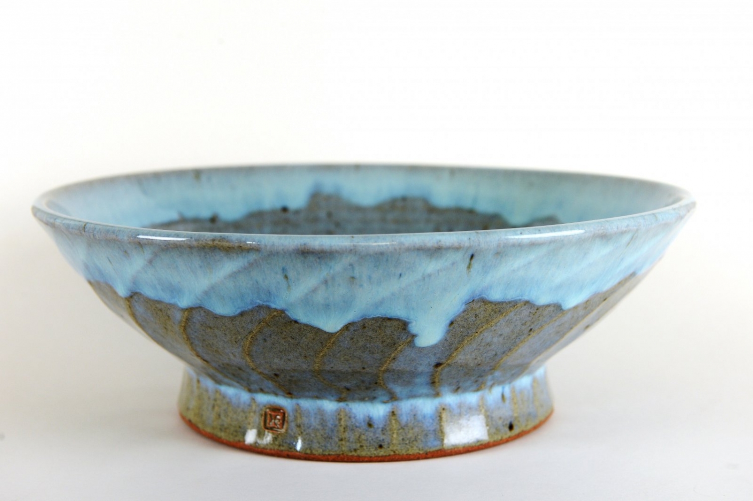 Dripped blue glazed bowl by Edward Hughes
