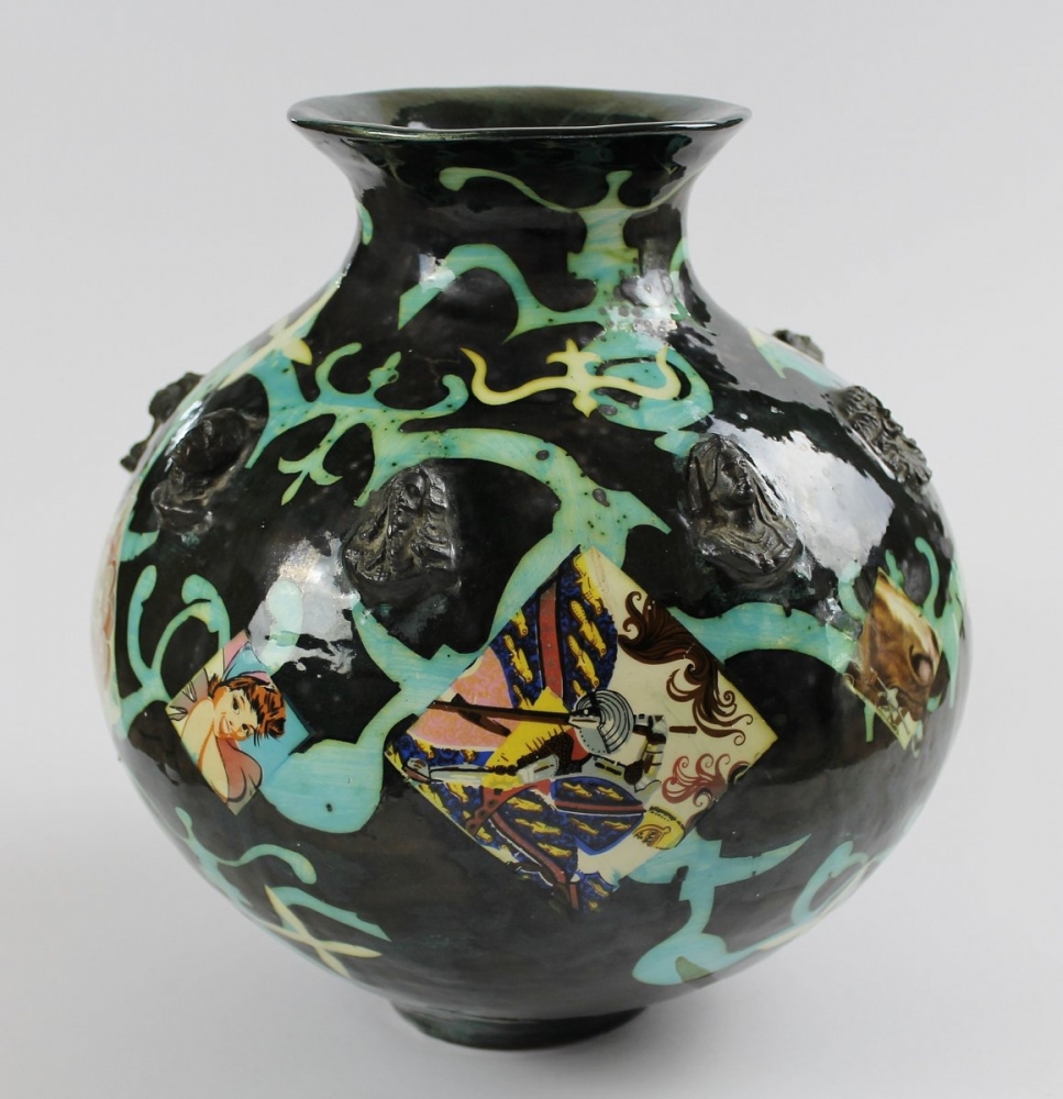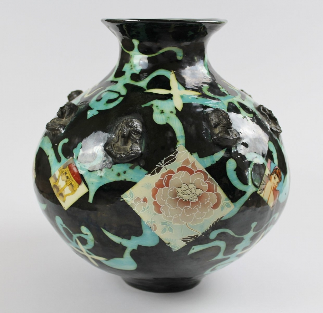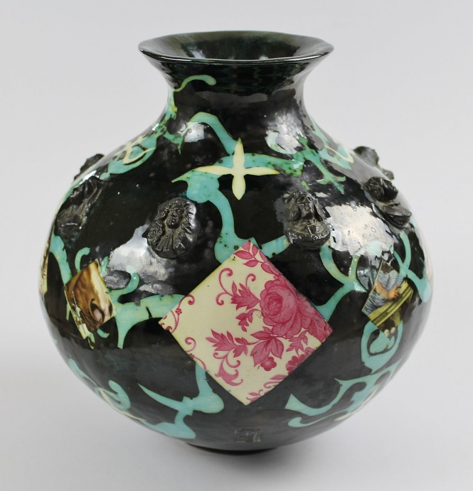 Media: Glazed Earthenware, Applied Enamel Motifs, Collage Application
