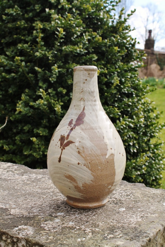 Korean type footed bottle, brushed slip, iron motif by Jim Malone
