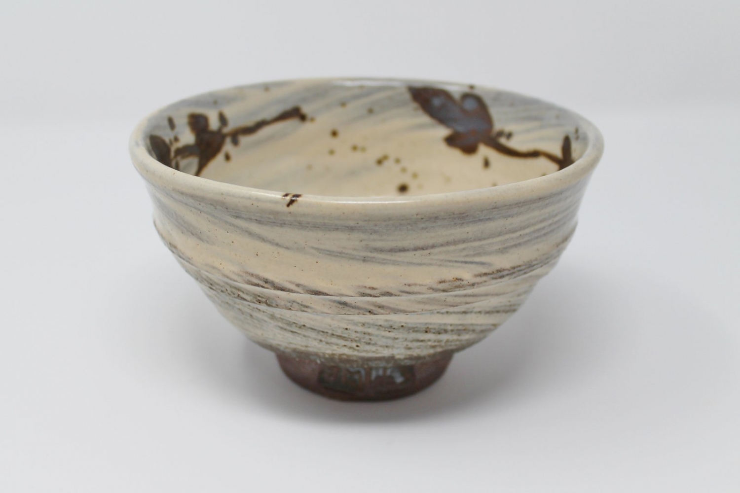 Teabowl, hakeme glaze, iron pattern by Jim Malone